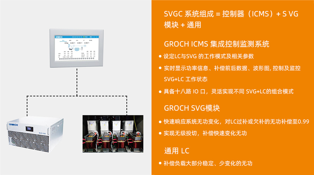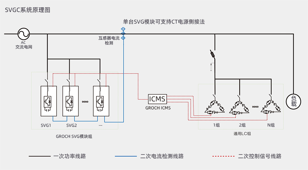 通過對 SVGC 方案中的任一功率元器件(SVG 模塊或 LC)進行組合,可實現:
